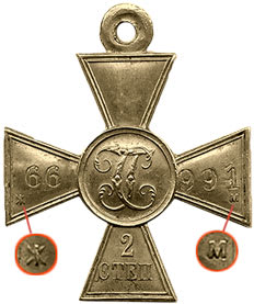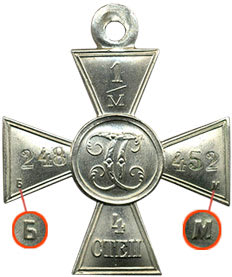 Для Продати Георгіївський Хрест 4 ступені мільйонник нумерації більше одного мільйона на верхньому промені зворотного боку хреста штампувалося «1/М», решта цифр містилася на лівій та правій сторонах хреста.